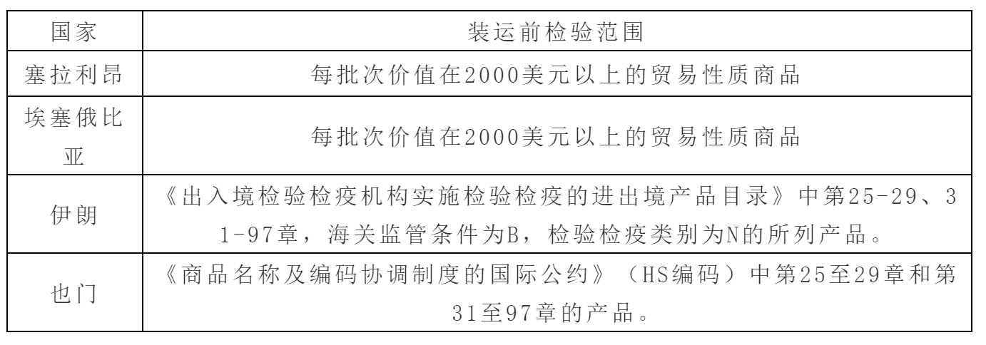 按照中国和国外政府签订的双边协议,对出口至部分国家和地区的商品需申请实施装运前检验。